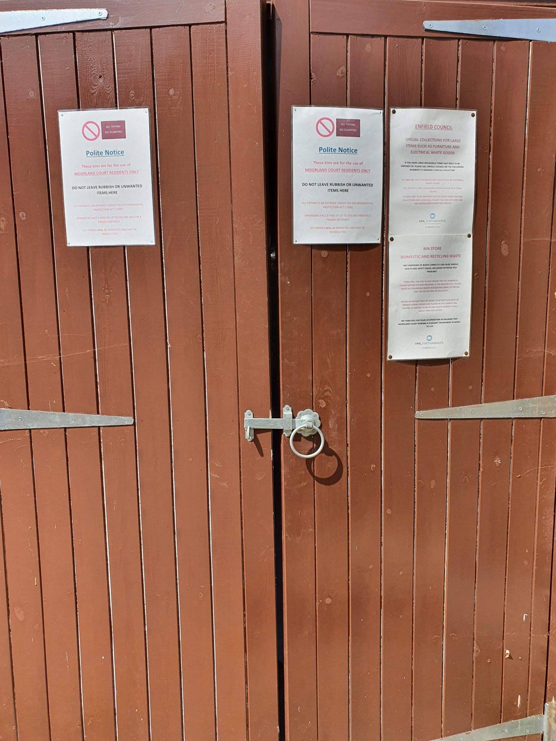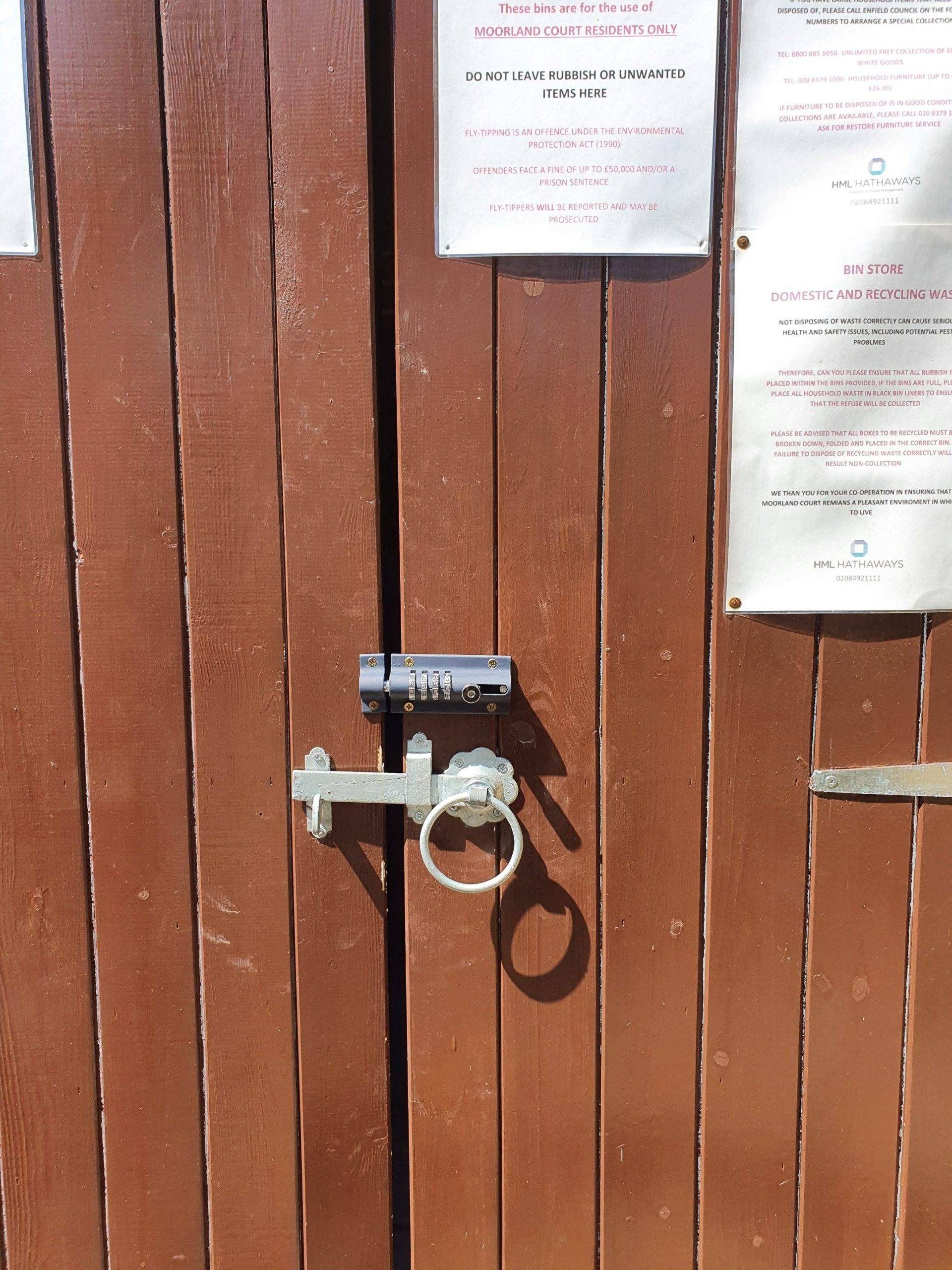 Winchmore Hill - To fit a combination lock in the bin store to stop fly tippers